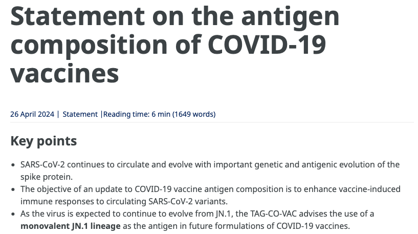 Declaración sobre la composición de antígenos de las vacunas contra la COVID-19
