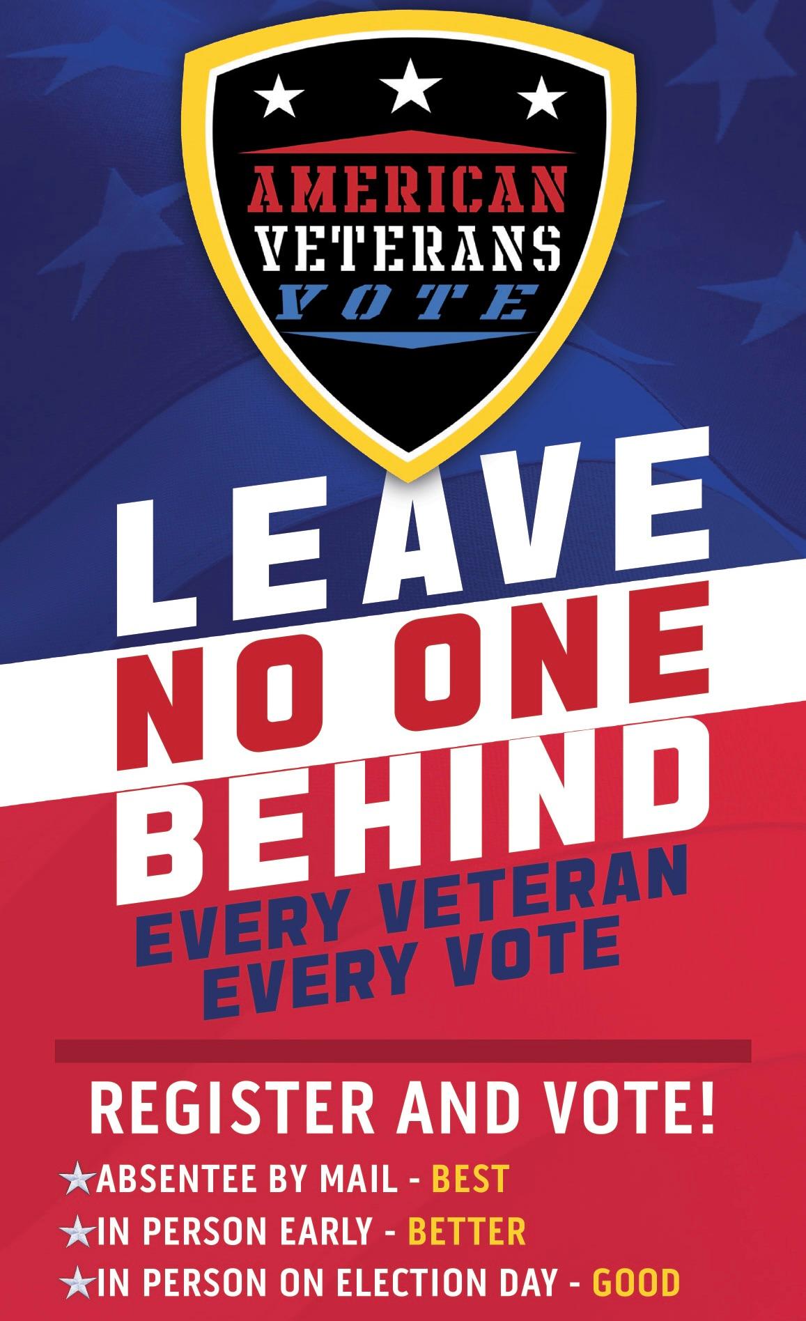 - Fight political apathy; Veterans must be front and center in voter turnout, absentee ballot sign-ups, and early voting