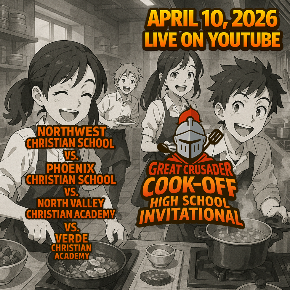 On Friday, April 10th, 2026, four teams of four high school-aged students from North Valley Christian Academy, Northwest Christian School, Phoenix Christian Preparatory School, and Verde Christian Academy will come together at 5:30pm at the Classic Cooking Academy in Scottsdale.