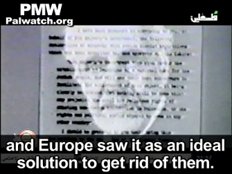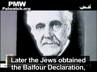 Former PA Minister of Education Sabri Saidam similarly promoted the idea that Europe plotted to ship its Jew problem off to "Palestine" and for this purpose came up with the Balfour Declaration. Saidam posted a video produced by official PA TV, which explained that Europe "was sick of the behavior of the Jews... and therefore it planned to get rid of them":