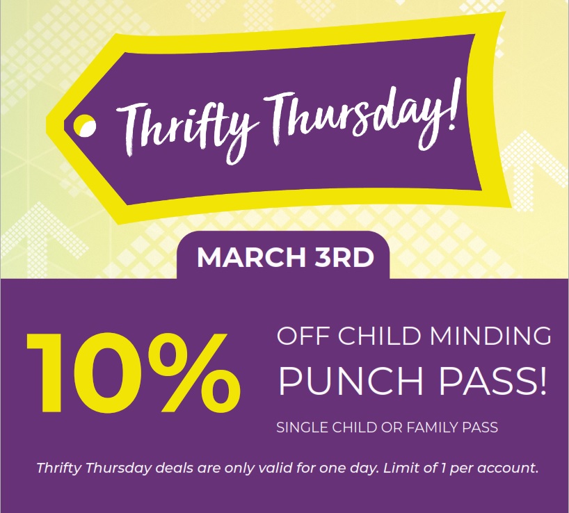 March 3 - 10% off single child or family childminding pass.