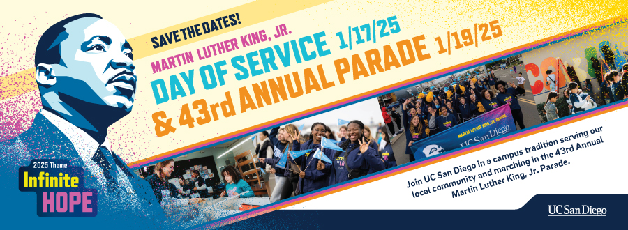 Join UC San Diego’s students, staff, and faculty, and alumni to march in San Diego's Martin Luther King Jr. Parade and honor Dr. King by coming together for a Day of Service.
