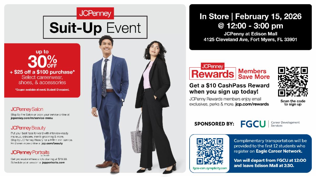 The deadline for the Fall 2026 Career Advancement semester is Monday, February 16, 2026. Please submit your application in its entirety to Julie Leyden (jleyden@fgcu.edu).