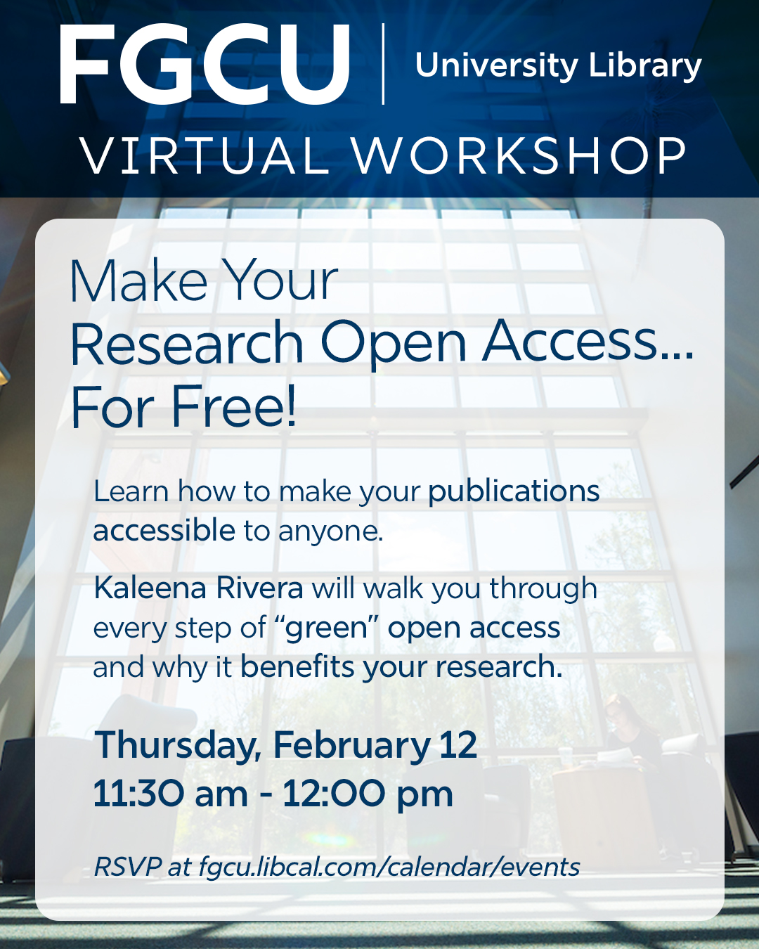| | United Campus Ministries in collaboration with the Office of the President at FGCU invites all faculty and staff to an appreciation luncheon on February 23, 2026, at 12:00 p.m., in AB 9, Room 138. | | |