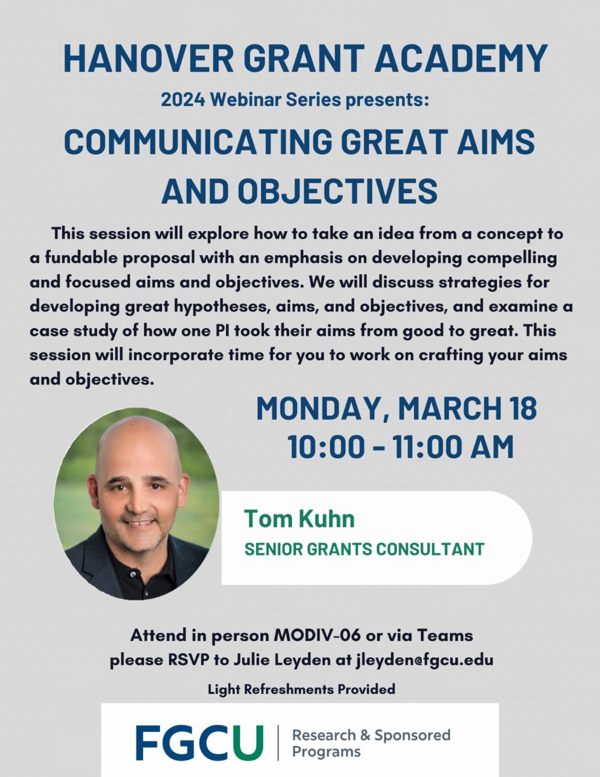 Getting Funded! Internal Resources at FGCU & External Opportunities – Friday, March 29 from 9:00a-10:30a