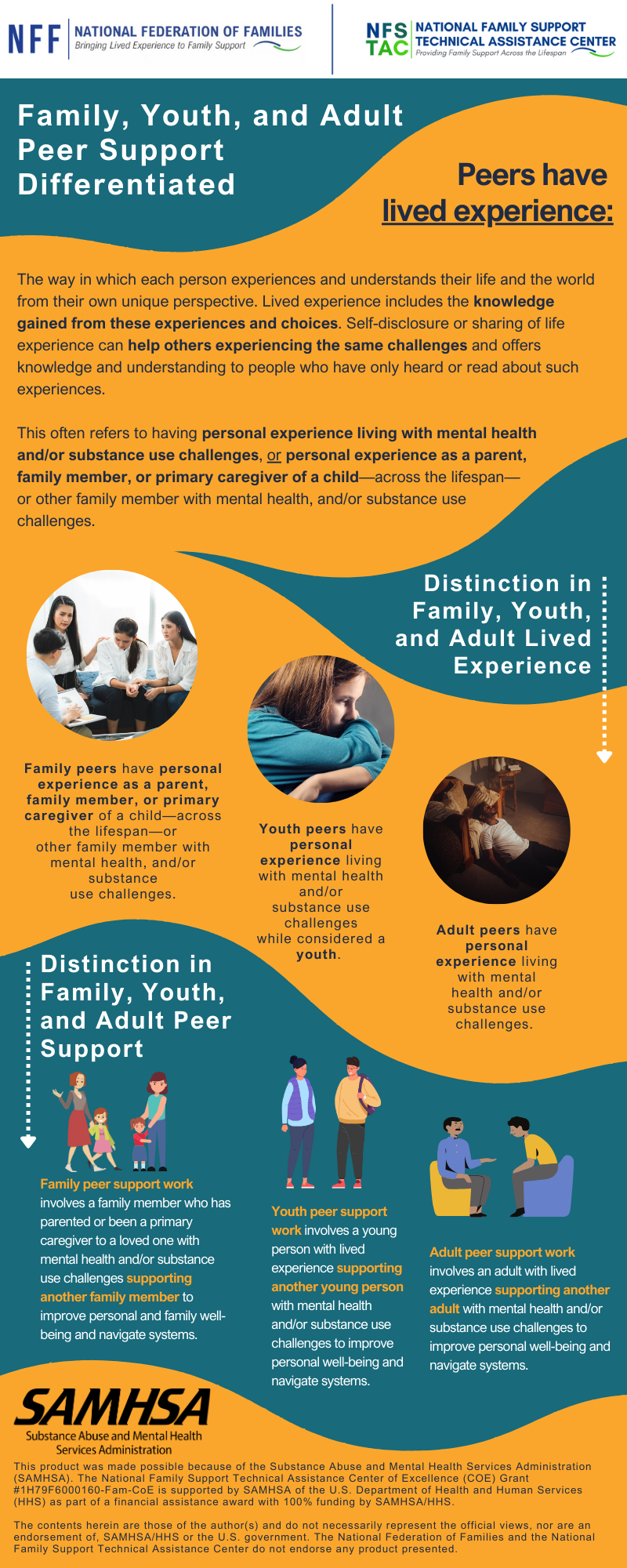 Family, Youth, and Adult Peer Support Differentiated Infographic