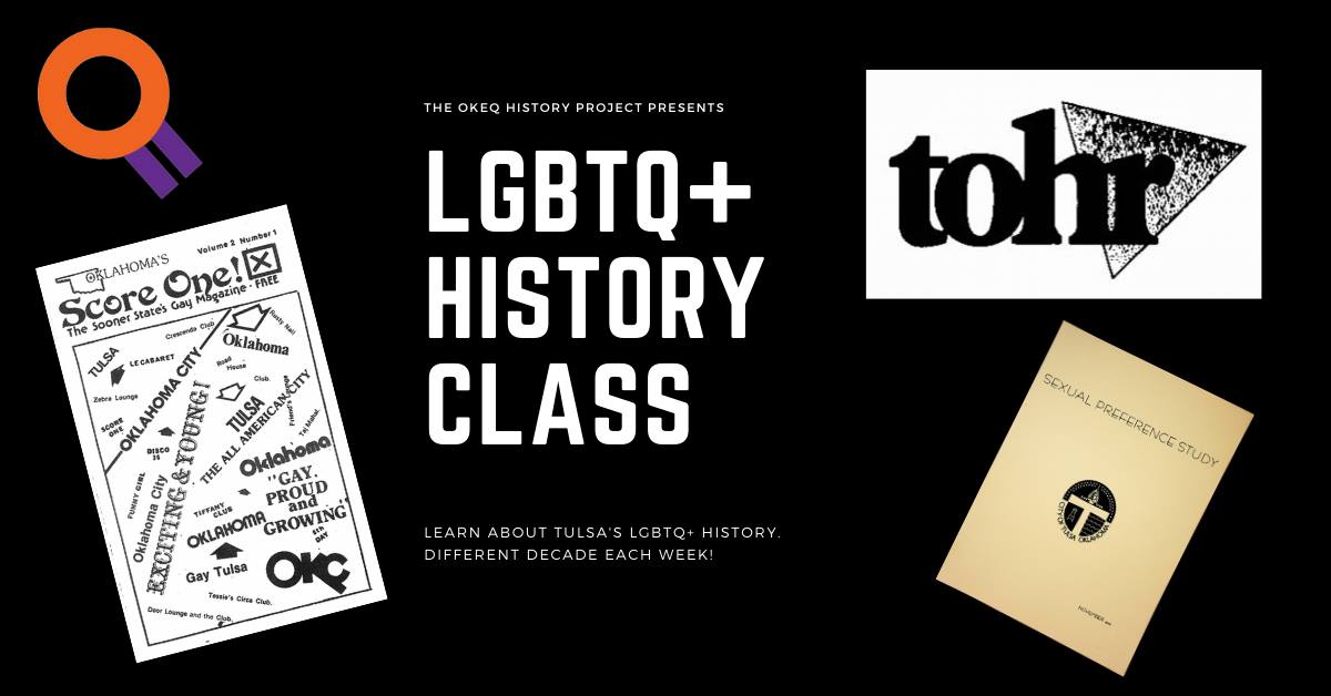 Join the OKEQ History Project as we look back on different decades of Tulsa LGBTQ+ history from the OKEQ History Project Room inside the Dennis R. Neill Equality Center!