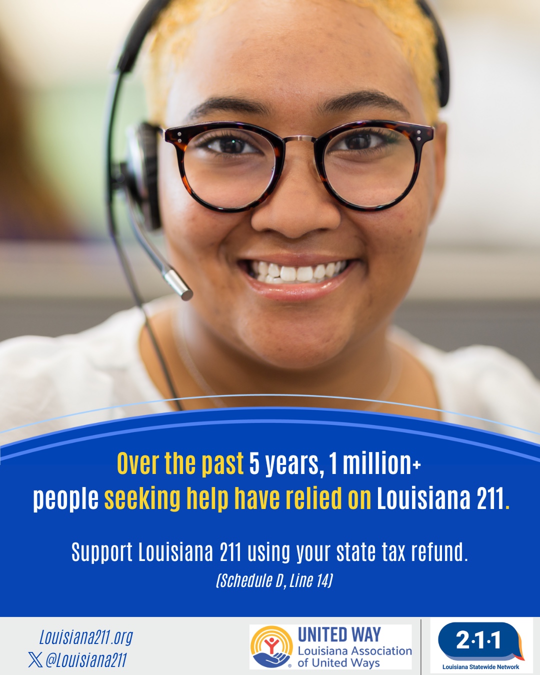 Your contribution helps ensure that Louisiana 211 remains a free, confidential, and accessible resource for Louisiana residents 24/7.