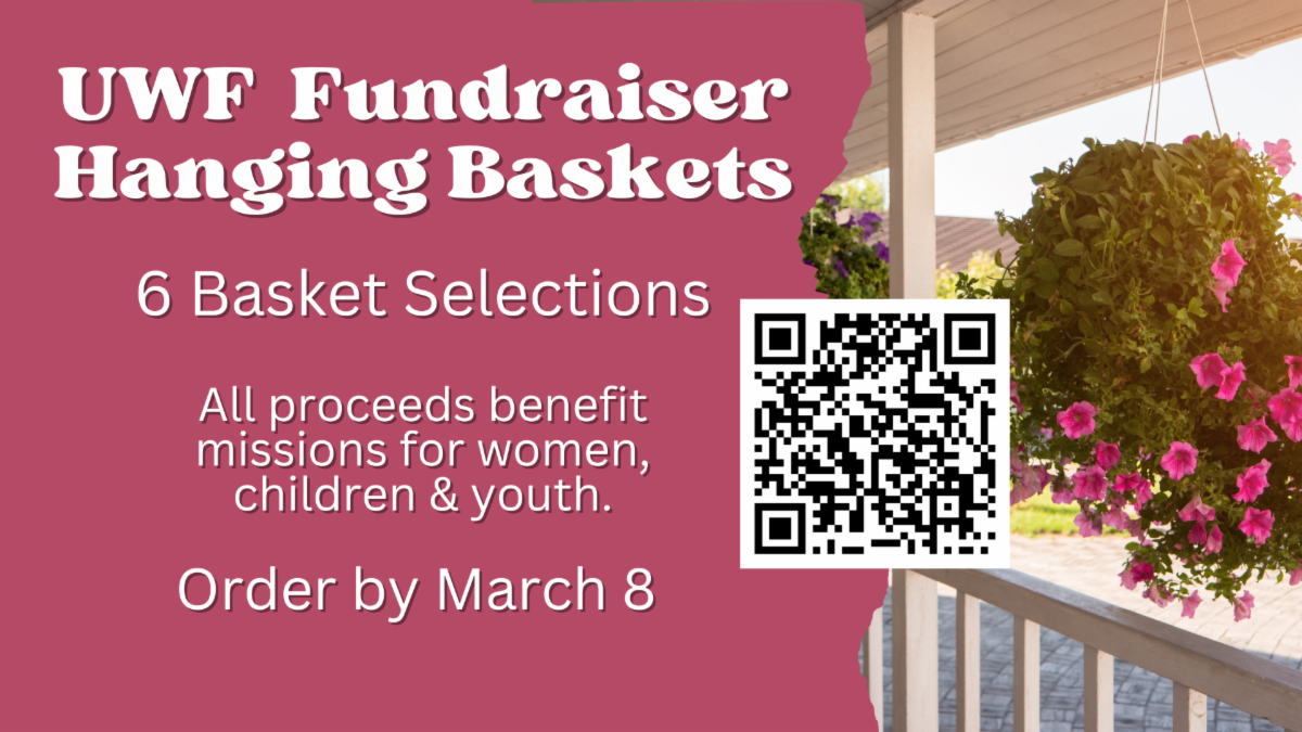 Evidence to the contrary, spring is coming! United Women in Faith is once again selling hanging baskets from Southland Nurseries to benefit missions for women, children, & youth.