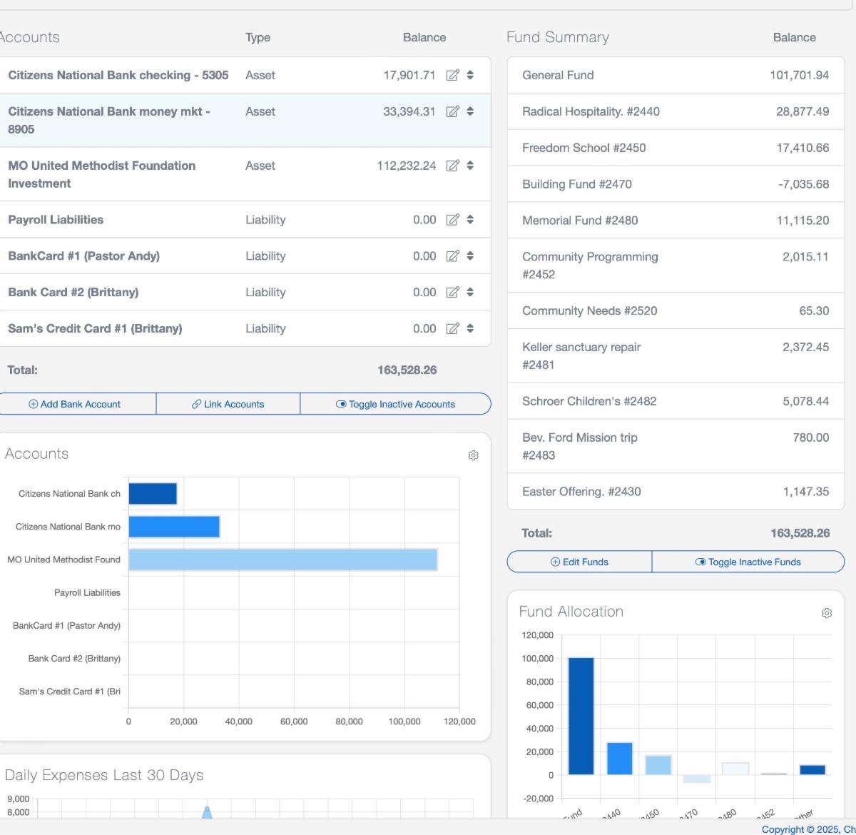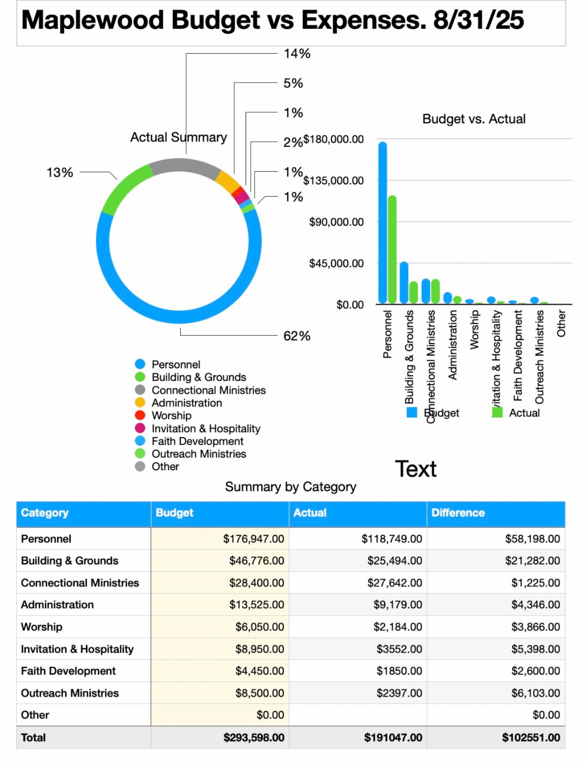 - this does not include income for memorials and special giving opportunites and expenses paid from designated funds and savings.