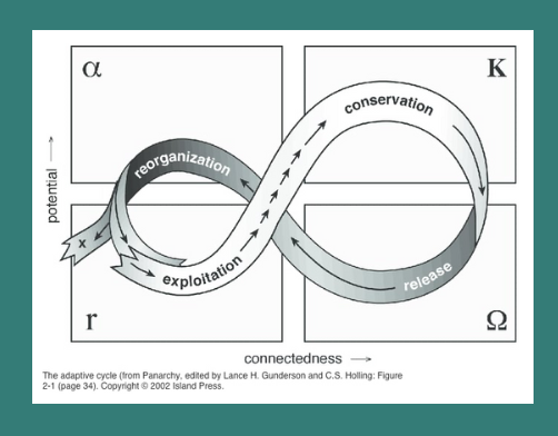 While studying for my doctoral degree in Ecology, years ago now, I had the opportunity to learn about the adaptive cycle. It describes how complex systems, from cells to human societies, organize energy over time; you can learn more about it here. One of its innovations from an ecological perspective was to highlight the importance not just of periods of the accumulation and stasis of energy, but periods of energy release and reorganization. In the last couple of months, I have found myself reflecting on this model, finding it a helpful framework for understanding the chaos and dissolution on display in our national politics. While destructive, our present moment can also be seen as a kind of energy release.