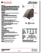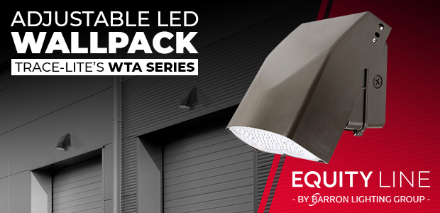 Part of the EQUITY Line, the compact, energy-efficient WTA wallpack is available in lumen packages ranging from 3600 lumens to over 10,500 lumens. This adjustable wallpack allows the user to aim and set the fixture from 0° (pointing down) up to 90°, allowing for light to be aimed where it is needed. The WTA has efficacies up to 133 LPW and provides over 70% energy savings compared to HID technology.