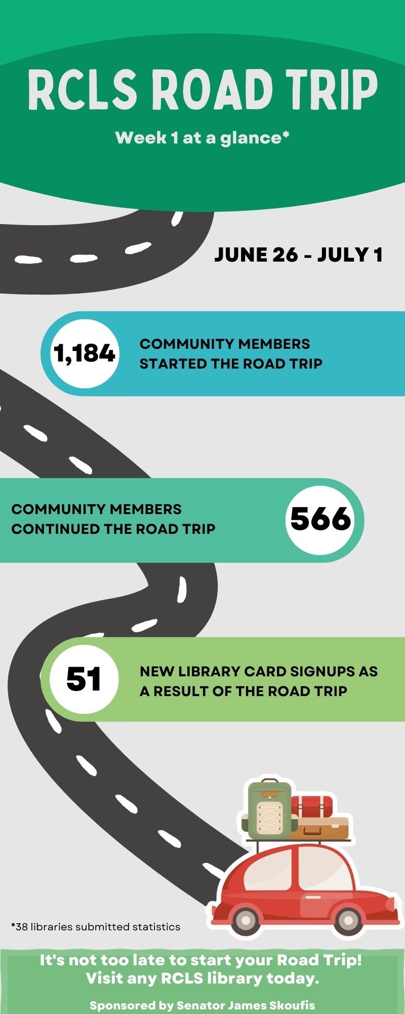 Are you looking for a local adventure with your kids this summer? Take the #RCLSRoadTrip! Begin your journey with a map of all 47 RCLS libraries. Start at any library, anytime, and explore as many libraries as possible! Get a sticker on your map for each library visited & win free prizes. Remember to discover the attractions & activities of each community.