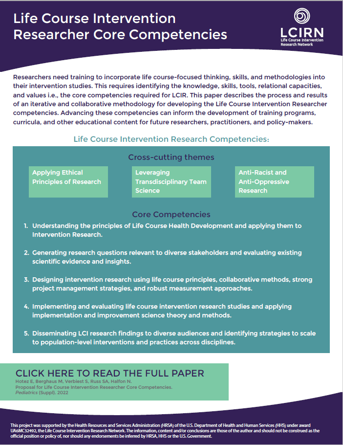 This project is supported by the Health Resources and Services Administration (HRSA) of the US Department of Health and Human Services (HHS) under award UA6MC32492, the Life Course Intervention Research Network. The information, content, and/or conclusions are those of the author and should not be construed as the official position of, nor should any endorsements be inferred by HRSA, HHS, or the US Government. any endorsements be inferred by HRSA, HHS, or the US Government.
