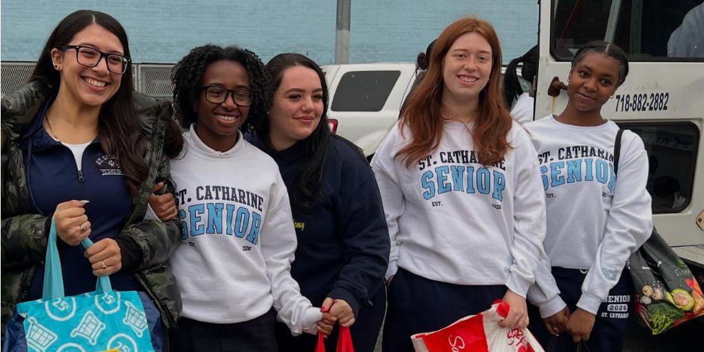 La Academia de Santa Catalina se asoció con el Centro de la Misericordia para ayudar a proporcionar alimentos a los vecinos necesitados. Tras vivir la obra corporal de misericordia de «dar de comer a los hambrientos», la comunidad de Santa Catalina se unió para recolectar, entregar y clasificar donaciones a tiempo para el Día de Acción de Gracias en Estados Unidos.