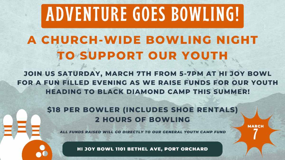 Join us for a Youth Summer Camp Bowling Fundraiser supporting our students heading to Black Diamond Camp this summer. Bowling is $18 per person and includes shoe rental and two hours of bowling, with 16 lanes reserved. All funds raised will go to our general camp fund.