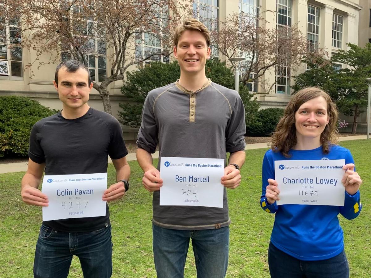 Graduate students Colin Pavan, Ben Martell, and Charlotte Lowey ran the 2022 Boston Marathon on April 18!