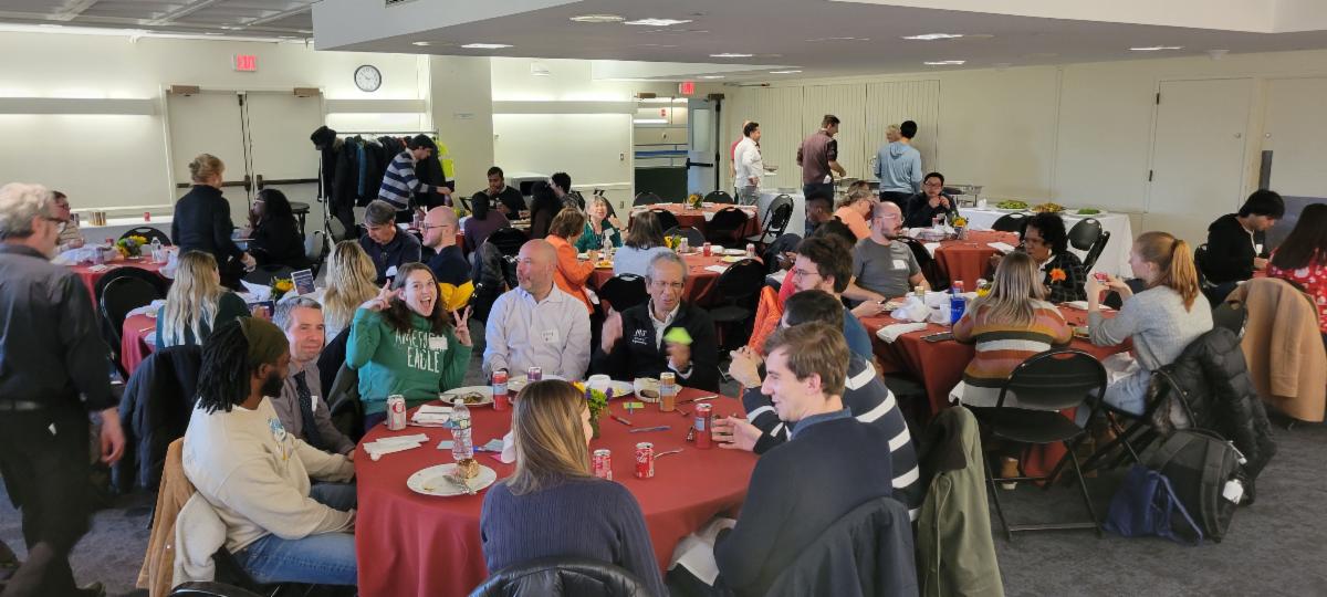 On Friday, Dec. 16 AeroAstro faculty, staff and their families attended the first in-person AeroAstro holiday party since 2019! The event was hosted in on the top floor of the Media Lab, where attendees enjoyed dinner, drinks and cookie decorating. View the full album. | |