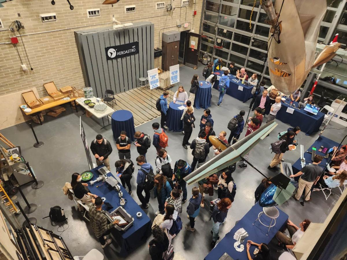 | The first-year open house, hosted by AIAA, was on Dec. 2. First-years got the chance to talk to fellow undergrads, professors and groups about Course 16. Professors Raúl Radovitzky, Mark Drela, Zoltán Spakovzky and Danielle Wood were in attendance. The HSL, LAE, nectslab, LEAN , Space Enabled and SPL were all represented, as well as student groups Design Build Fly, Rocket Team and WAE. | | | | |