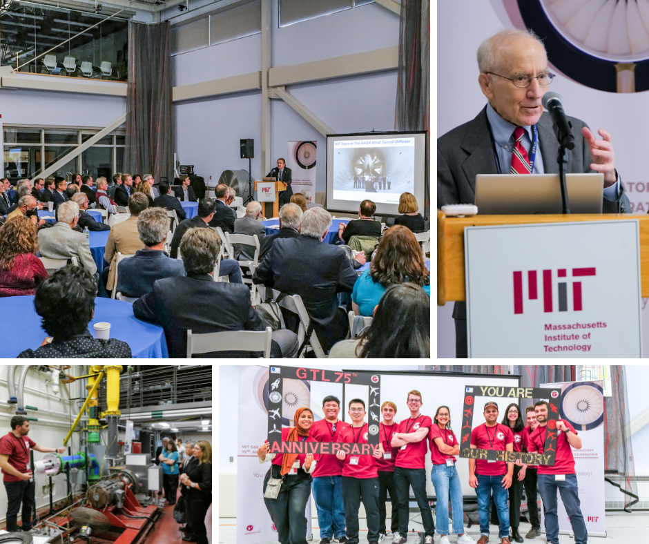 On Tuesday, Oct. 4, Greg Hyslop, Chief Engineer and EVP, Boeing, presented MIT and the Department of Aeronautics and Astronautics with a certificate and MIT flags that were flown on the Starliner. The flags were signed by people who worked on the spacecraft, including MIT alumni. They will be displayed in Headquarters and department head Daniel Hastings' office. | The Gas Turbine Lab celebrated its 75th Anniversary on Friday, Oct. 7. Current and former lab leaders and members enjoyed a day of reminiscing about the past, and learning about the future of the lab from student research presentations. Following the day's events, a formal dinner was held for all guests in the Stratton Student Center. View all of the photos here. | | |