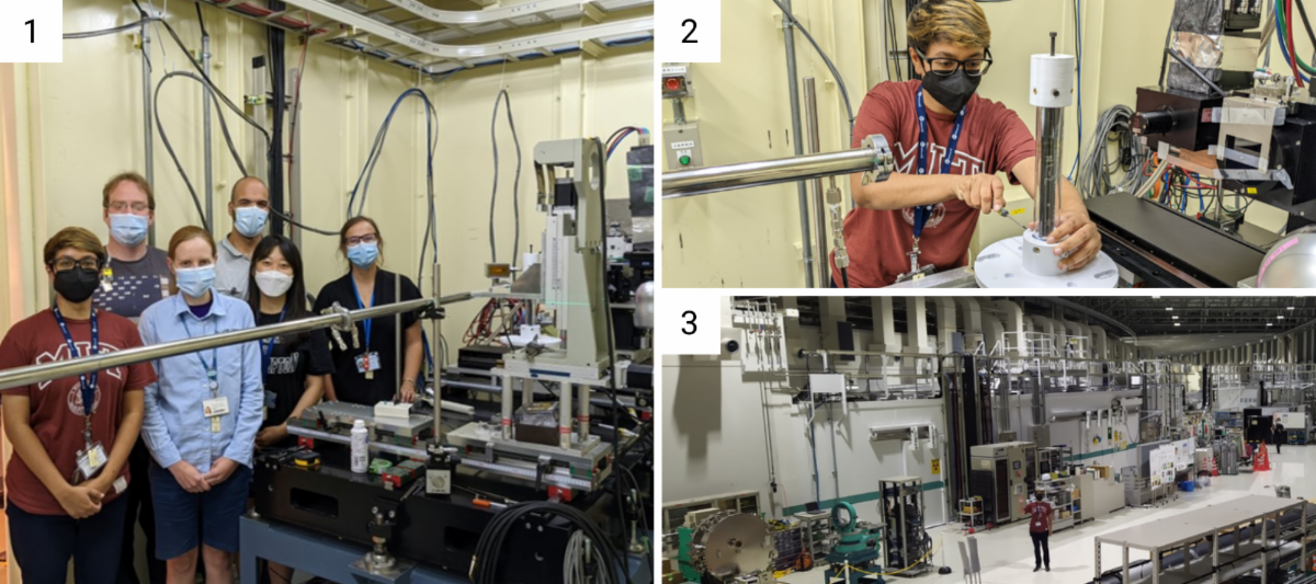 (2) Patel making adjustments to the testing rig at the beamline.