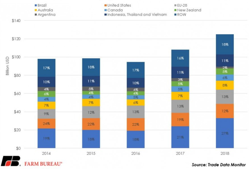 FIGURE 2. CHINA'S TOTAL AGRICULTURAL IMPORTS BY VALUE, IMPORTERS MARKET SHARE