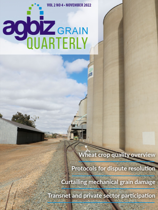 The November edition of Agbiz Grain Quarterly keeps every role player abreast of new developments in the grain-handling and storage industry in South Africa. As always, the latest edition includes several in-depth, industry-specific articles ranging from food production optimisation and the future of grain, to ways to curtail mechanical grain damage.