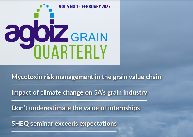Agbiz Grain Quarterly is a leading digital magazine for South Africa’s grain handling and storage industry. The February 2025 issue explores the vital role of internships in modern grain companies, along with a new program for training grain silo managers. It also examines how industry leaders are adapting to technological advancements, climate change, and evolving market dynamics. This issue features insights on Senwes’ new CEO and his focus on innovation, mycotoxin risk management strategies, and the implications of ESG for the grain and oilseeds sector. It also covers Transnet’s Final Network Statement and what it means for moving grain by rail again, plus highlights from the Agbiz Grain SHEQ seminar. Download the PDF here | Read the digimag here.