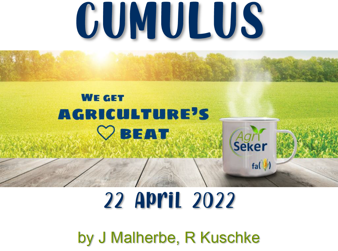 Together with widespread rain over the summer rainfall region, temperatures have trended downwards during April as is typical for autumn. There’s already been a number of cool mornings with minimum temperatures in the lower single digits as far north as parts of the Free State, North West and Mpumalanga. Given the medium-term outlook, the relatively frequent invasion of cold fronts into the interior from the southwest will continue until the end of the month. More autumn thundershowers are expected during the next few days, but there is no indication yet of a repeat of the cloudy, rainy situations that occurred during the last few weeks over the major summer grain production region. Read more in the latest edition of Cumulus, published by AgriSeker.