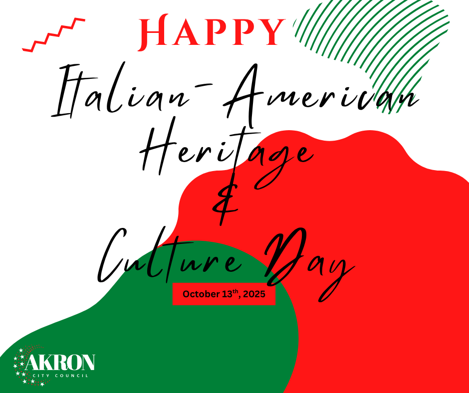 Resolution No. 184-2020 recognizing and declaring the second Monday in October as Italian-American Heritage and Culture Day in the City of Akron, Ohio to honor the history, culture and contributions of the Italian-American Community was passed June 29, 2020.
