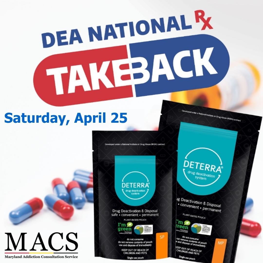 National Prescription Drug Take Back Day is on Saturday, April 25. In addition to finding nearby collection sites, help your patients safely dispose of unused medications from home by requesting free, easy-to-use Deterra drug disposal pouches from MACS.