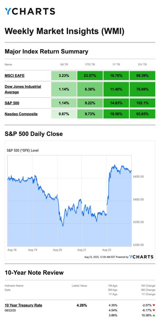 Source: YCharts.com, August 23, 2025. Weekly performance is measured from