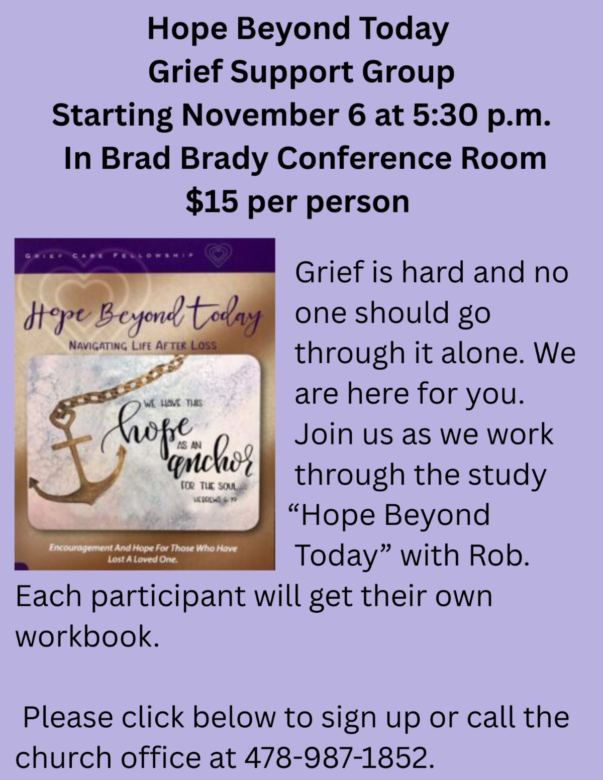 5:30 p.m. - Hope Beyond Today Grief Support in the Brad Brady Conference Room