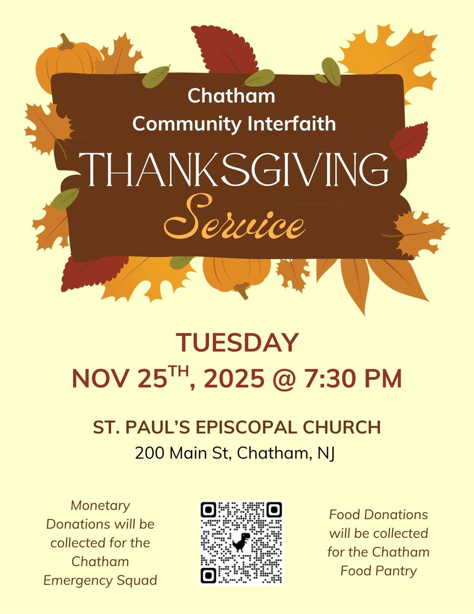 - Nov 25th - Interfaith Thanksgiving Service - St. Paul's Episcopal Church, Chatham 7:30 pm