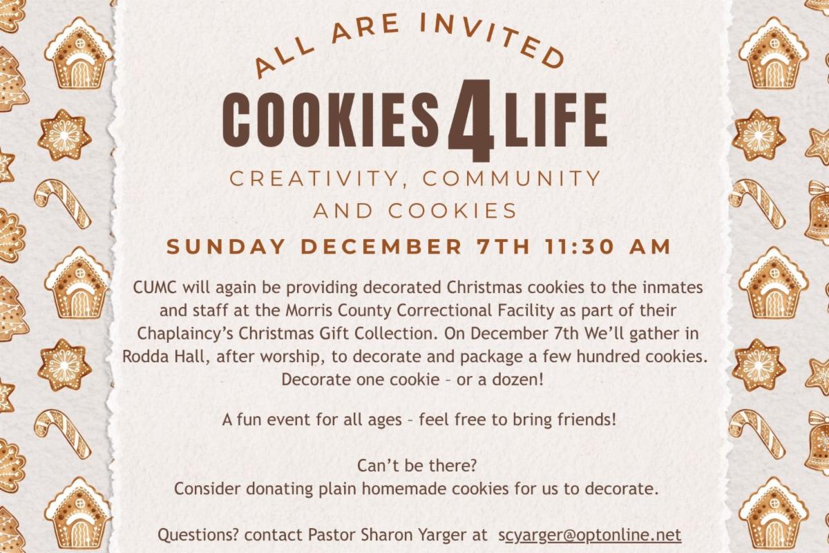 - Dec 7th - Cookies4Life - Rodda Hall 11:15 am