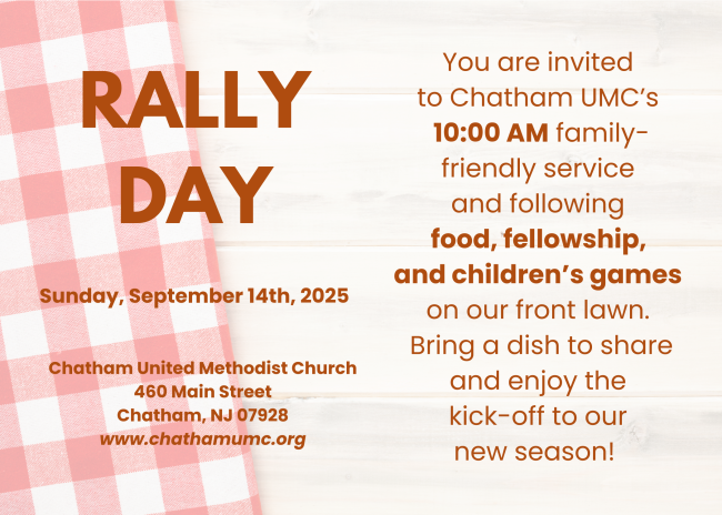 We are a week away from Rally Day which is on Sunday, September 14! The Church Council traditionally spearheads our Rally Day which takes places after the church service. I hope we can have a solid showing of council members to help organize and volunteer. The Men’s Breakfast Group has also been a great help in the past so I have added them to this invite.