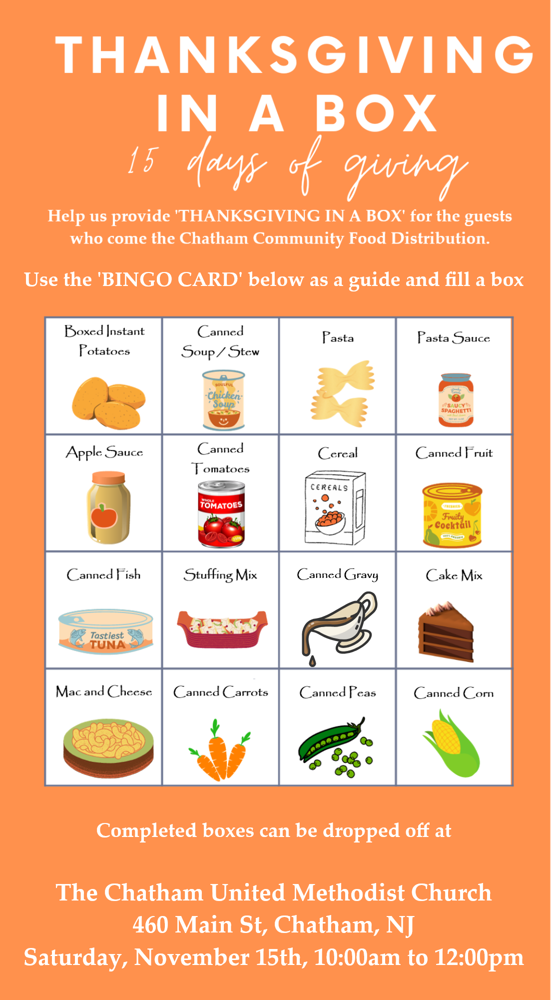 - Nov 15th - Thanksgiving Food Baskets collection and sorting 10:00 am