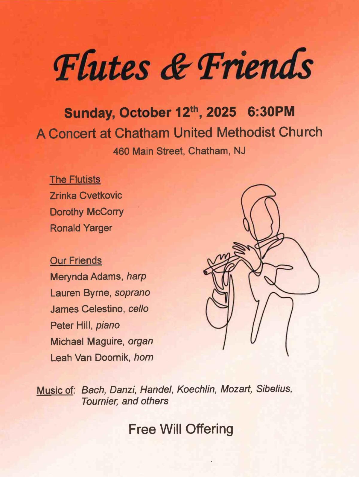 - Oct 12th - Flutes and Friends Concert 6:30 pm
