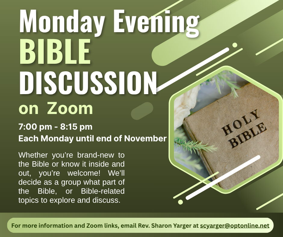 - Oct 29th - Annual Church Conference - Zoom meeting 7:30 pm