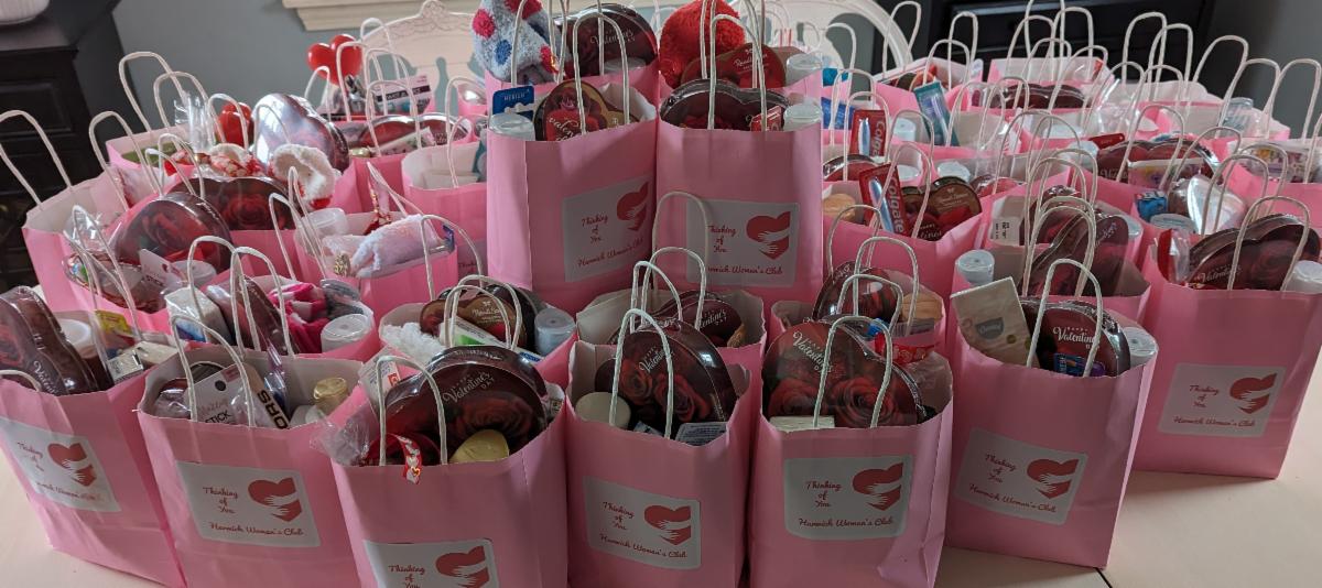 Big thanks and shout-out to the Harwich Women's Club! They crafted 48 beautiful gift bags filled with essentials and treats for clients at Independence House for Valentines Day!