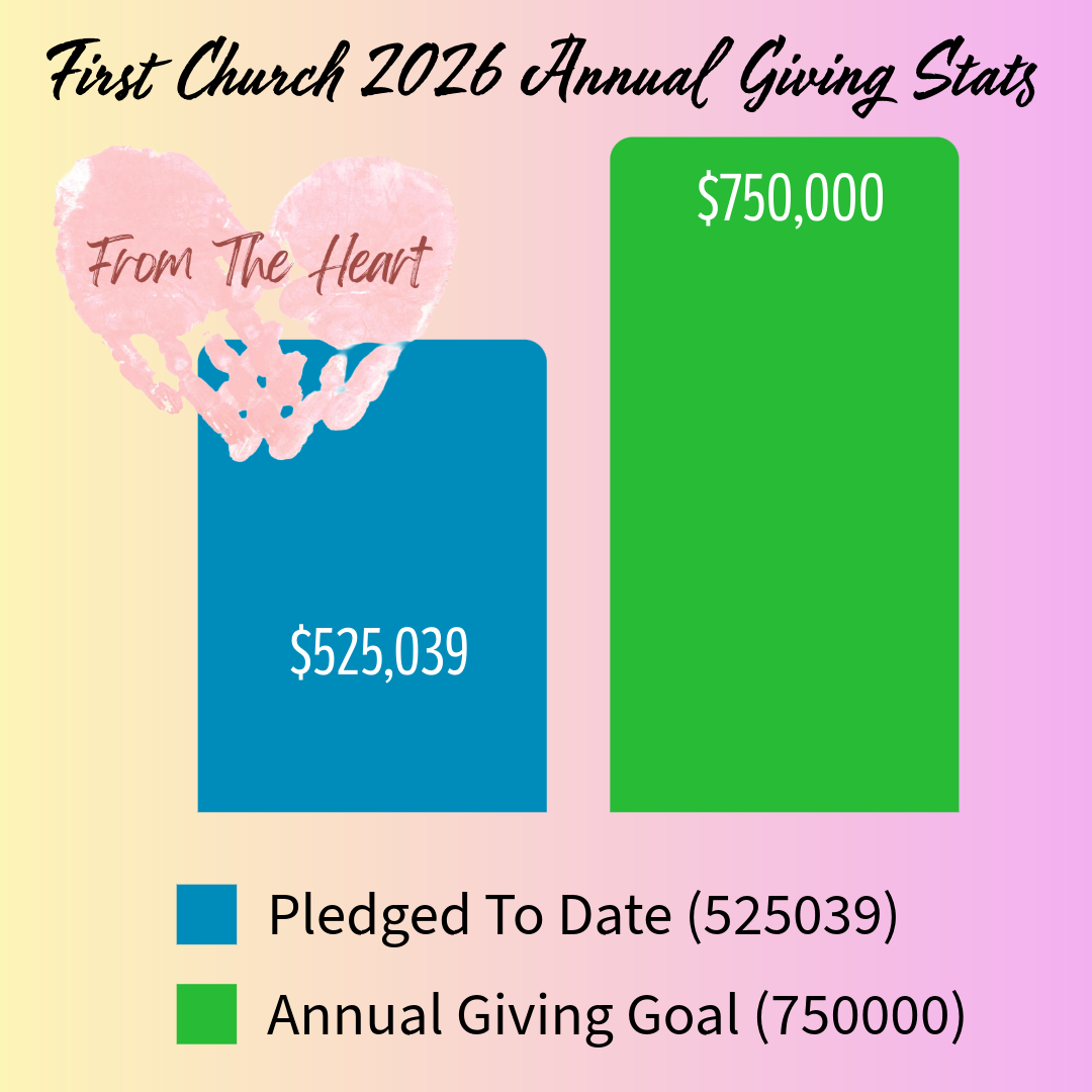 It’s not too late to make your pledge to First Church for the 2026 calendar year. You can scan the QR code or Click Here which will take you to the website and make your pledge online, or you can bring your pledge card on Sunday and place it in the offering plate as you come forward to present your food donations during the offering.