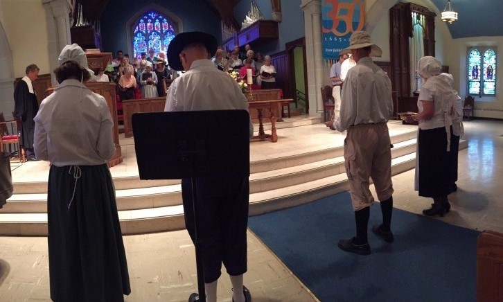 See examples of colonial dress and our parade float in our 350th anniversary of our church in 2015: https://www.fccog.org/our-350th-anniversary-in-2015 It would be great to redo this "First Church through the Ages" float for next year's big July 4th, 2026 town parade!