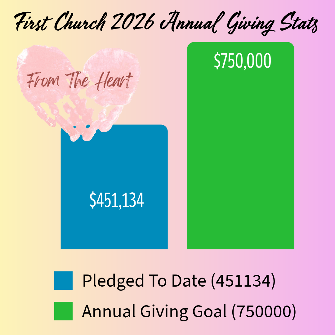 It’s not too late to make your pledge to First Church for the 2026 calendar year. You can scan the QR code or Click Here which will take you to the website and make your pledge online, or you can bring your pledge card on Sunday and place it in the offering plate as you come forward to present your food donations during the offering.