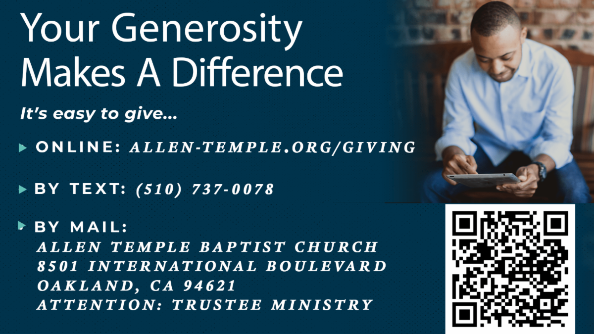 We invite you to join us in worshipping our Lord through giving and to regularly support Allen Temple financially so that the ministry of the church thrives all the more in the midst of difficult days.