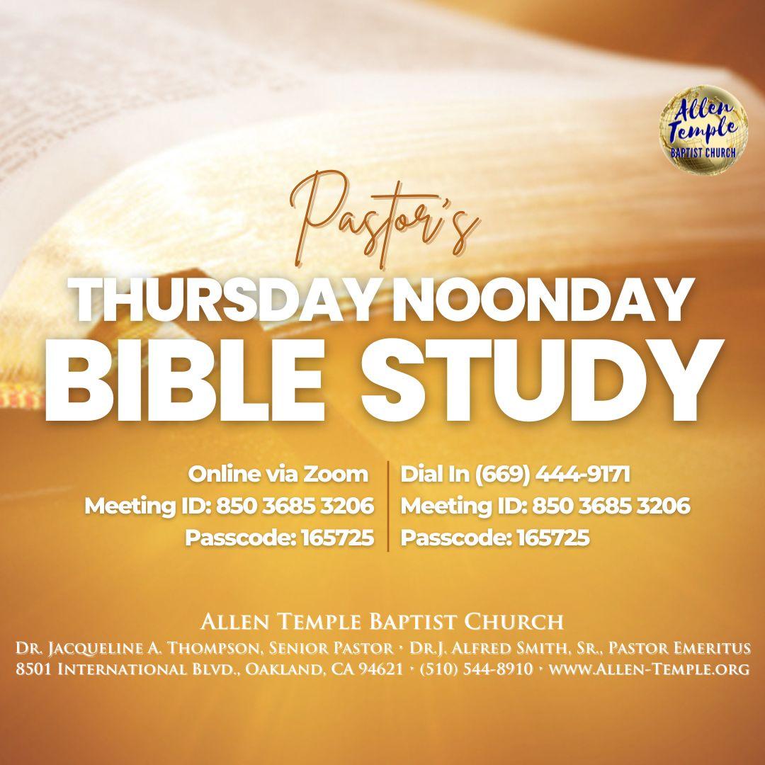 On Thursdays, join us for Noonday Bible Study with Pastor Jacqueline Thompson! Connect with us one of two ways: