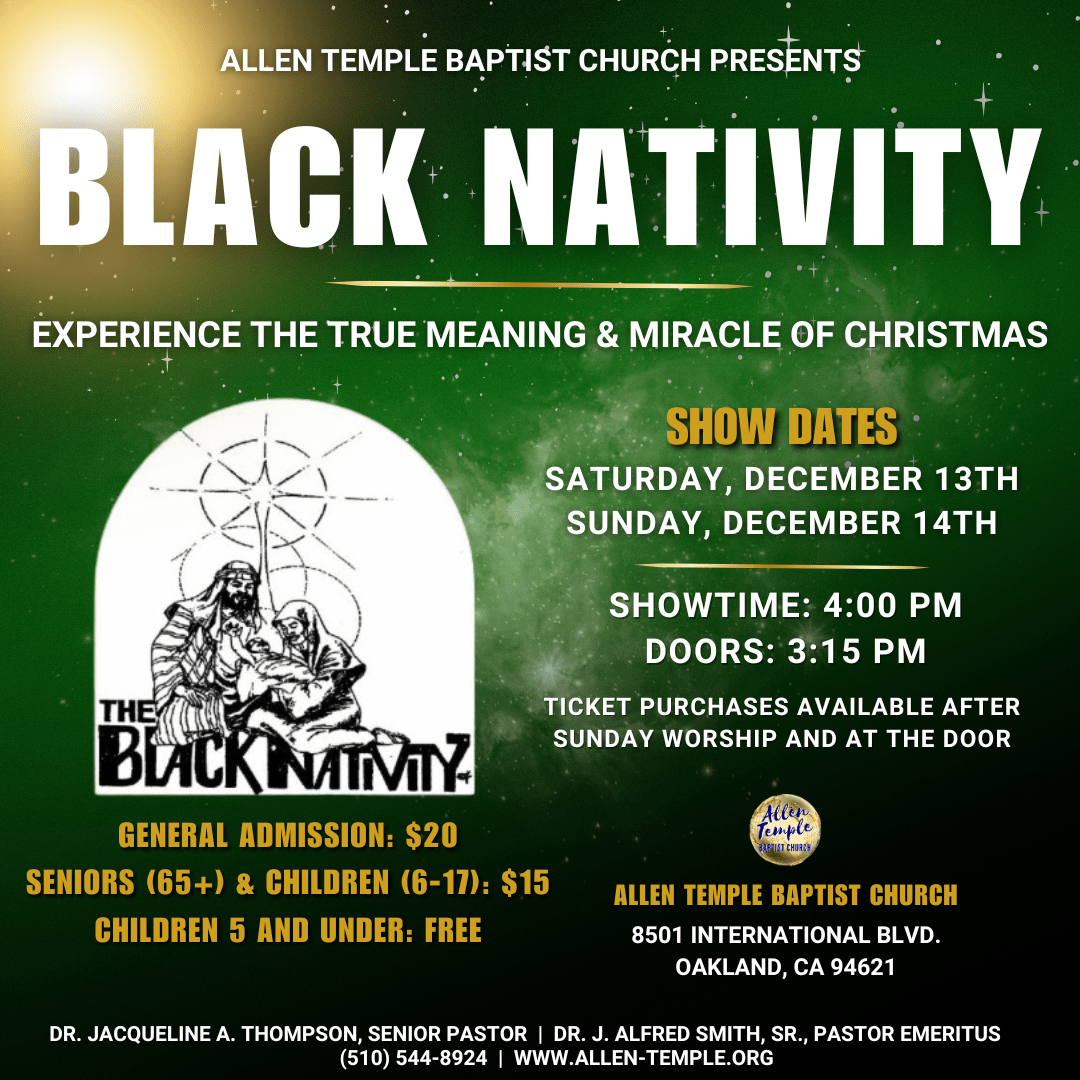 Mark your calendar and make plans to join us for Black Nativity 2025 - Allen Temple's rendition of Langston Hughes' acclaimed stage play on Saturday, December 13 and Sunday, December 14 at 4:00 PM! Be blessed by music, dance, and spoken word!