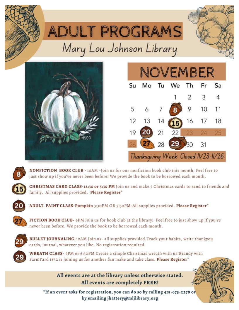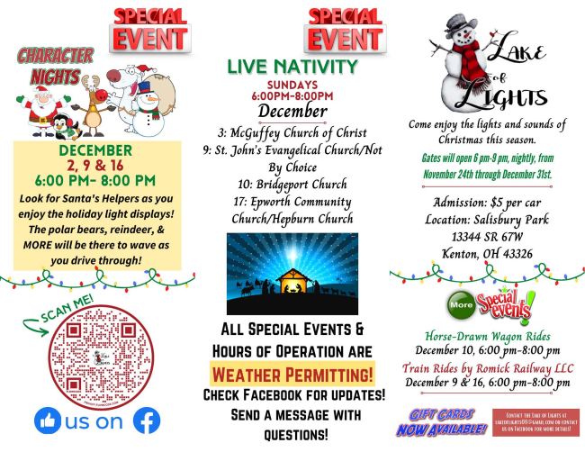 The event will be held at the Mid-Ohio Energy Community Room, located at 1210 Lima Street in Kenton, on Sunday, Dec 3 from 12-5pm. You can sign your children up for a time slot on the sign up genius link below. EACH CHILD DOES NEED A TIME SLOT SO WE HAVE ENOUGH VOLUNTEERS TO ASSIST THEM!!
