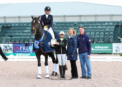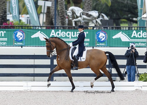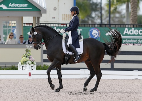 Brock was elated with the performance of Rosevelt, a 13-year-old Hanoverian stallion owned by Fritz and Claudine Kundrun, in the large class of 17 riders. Coming off a spectacular 2014 season, accumulating wins at Dressage at Lexington and Devon, today marks a great start to the 2015 season for the pair who will be staying in Wellington throughout the duration of AGDF.