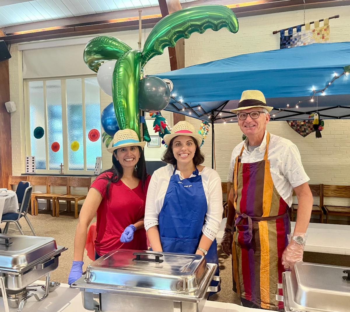 A Cuban-themed dinner on Saturday, August 2 at St. James Hendersonville highlighted the tremendous need for food supplies in Cuba, where hunger is widespread due to shortages. Spearheaded by the St. James group affectionately known as the Cubits, the Compañeros en Cuba dinner featured traditional dishes such as a simple cucumber salad, black beans and rice, ropa vieja made with pork (as well as a vegetarian version), pork sandwiches on pan Cubano, and guava crumble bars with coconut ice cream. Around 100 people were in attendance. All proceeds from the dinner will go to alleviating hunger in Cuba,” say Tari and Jack Watson, members of the Cubits.