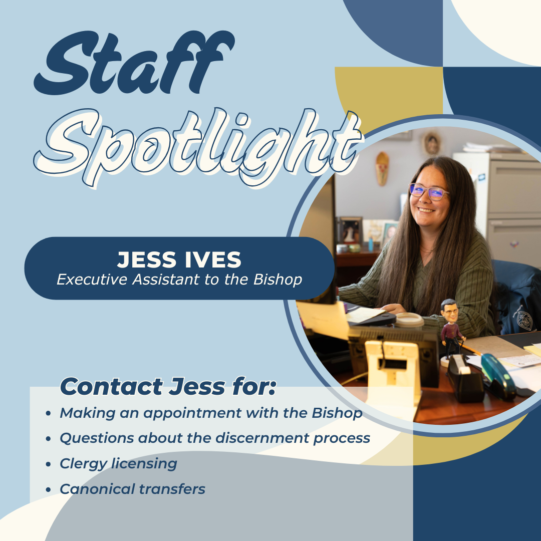 As the Executive Assistant to the Bishop, my job revolves around his ministry. I manage his calendar, visitation schedule and assist with diocesan committees, so that he can be present and available to clergy and parishioners.